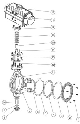 氣動蝶閥(材質碳鋼、橡膠密封、法蘭連接、配雙作用或單作用氣缸、不帶附件)